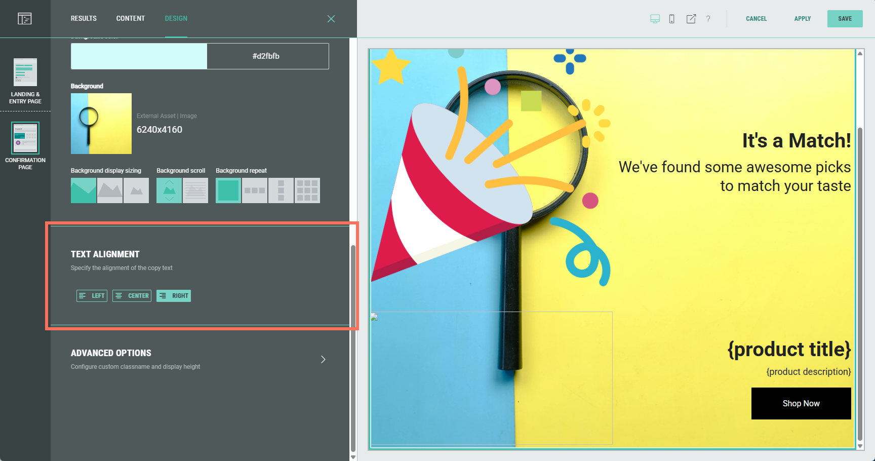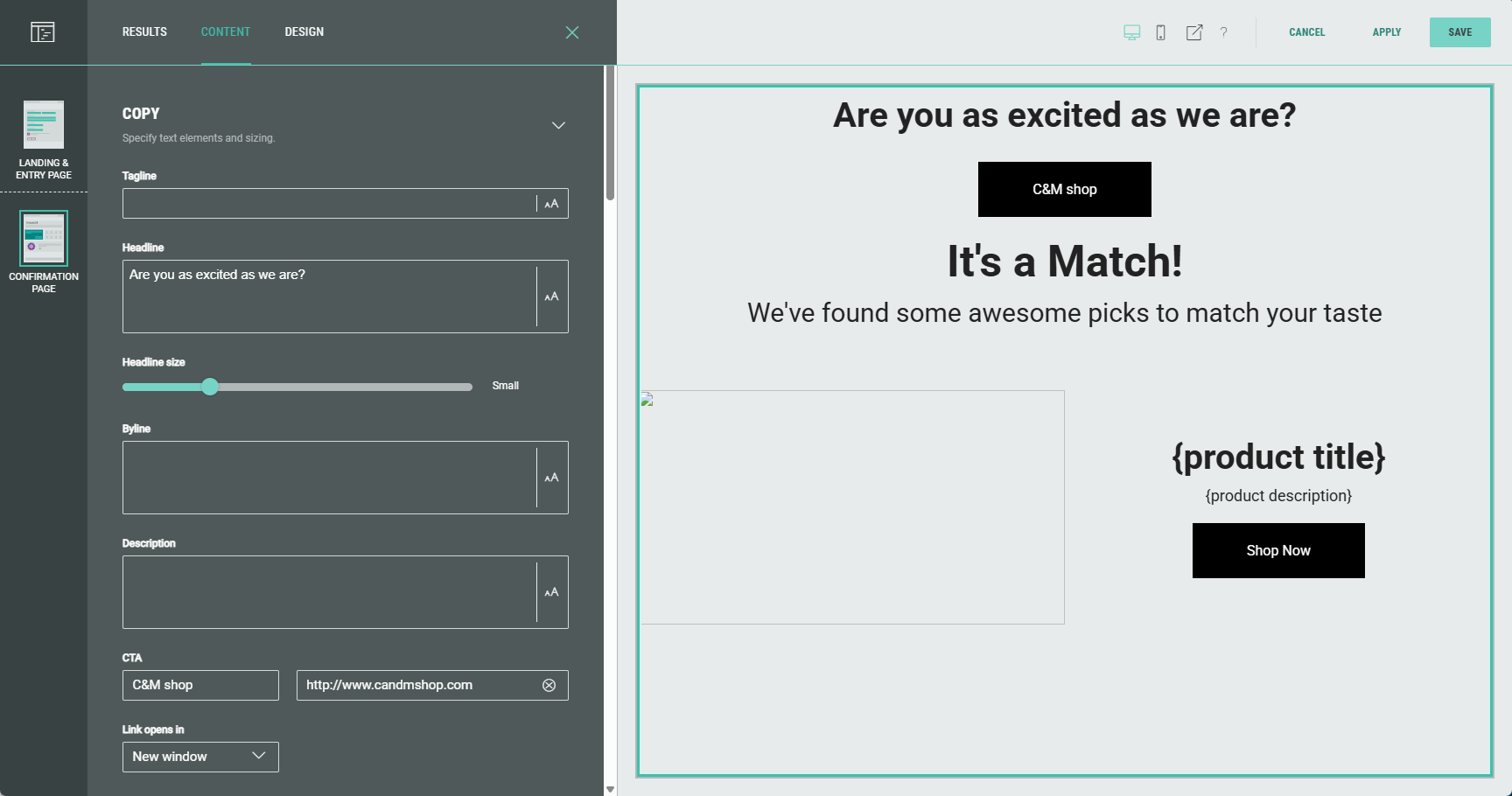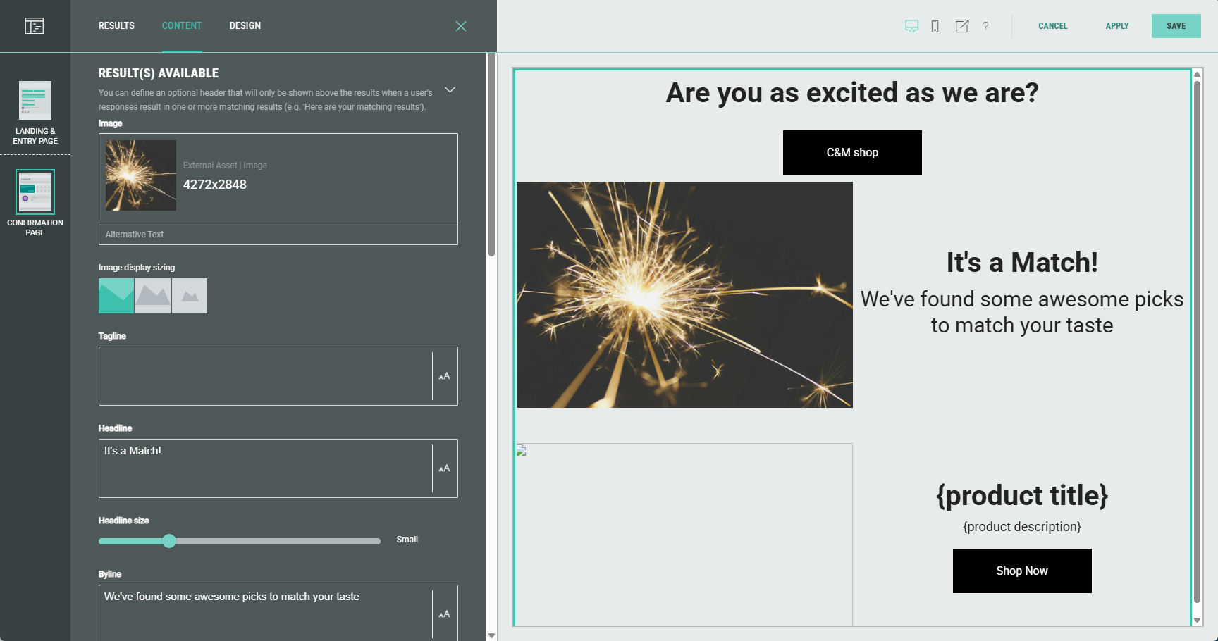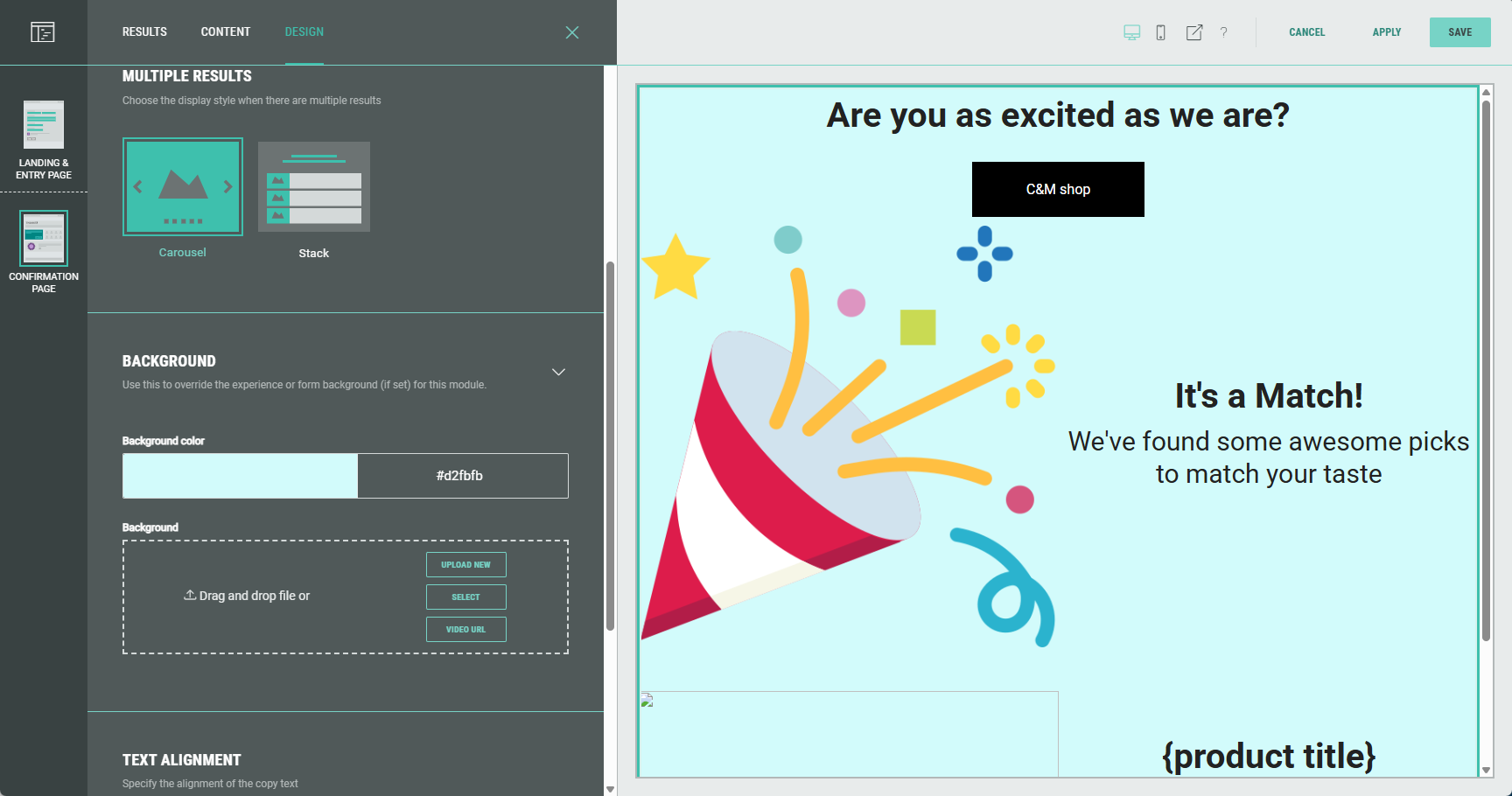 - No result(s) available — You can define text and other copy that will only be shown when a participant's responses do not match any result (e.g. Oops! There's no match).
