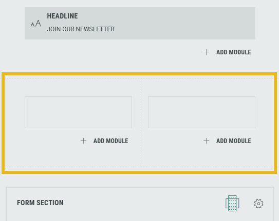 You can now see the added row, containing two columns, in between the Headline and the Form section.![]()