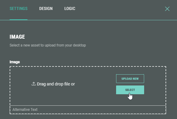 The selected image is visible as a thumbnail in the settings on the left, and in the preview on the right as it will be shown in the Experience to entrants.