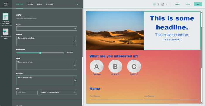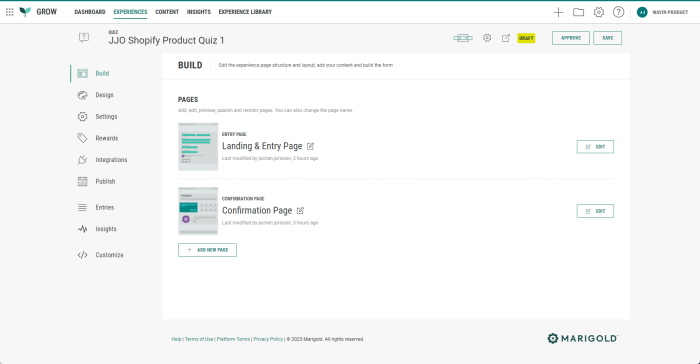 - Click on the Edit button at the right of a page, such as the Landing & Entry Page.