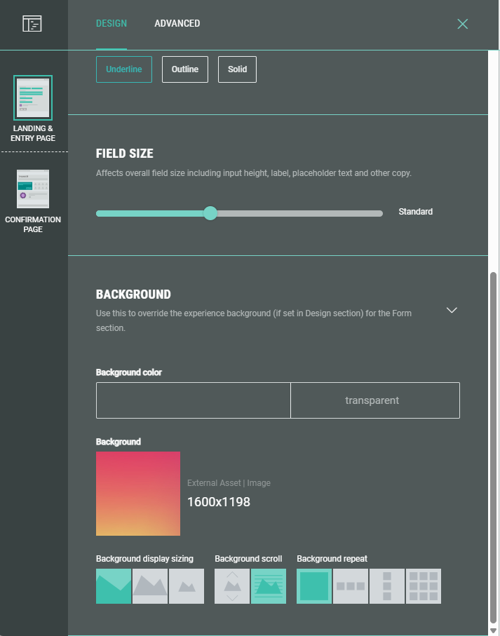 In the Form Settings, you have the ability to customize the form such as adding a background image and color, and changing the field style.