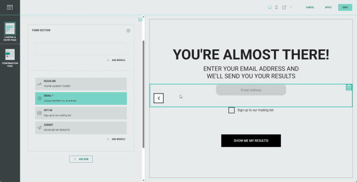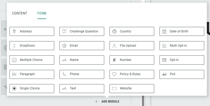 Note: You can only use data collection modules within the Form Section.