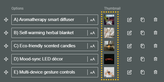 Clone choice — To duplicate the option, with identical label, data and image.