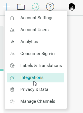 1. Click on the Gear icon in the top navigation bar and select Integrations from the list of available options.