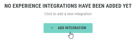 - Click on + Add Integration in the main workspace to take you into the setup wizard. (This can be done from either the Account level or the Experience level, as explained above.)