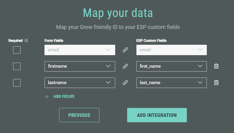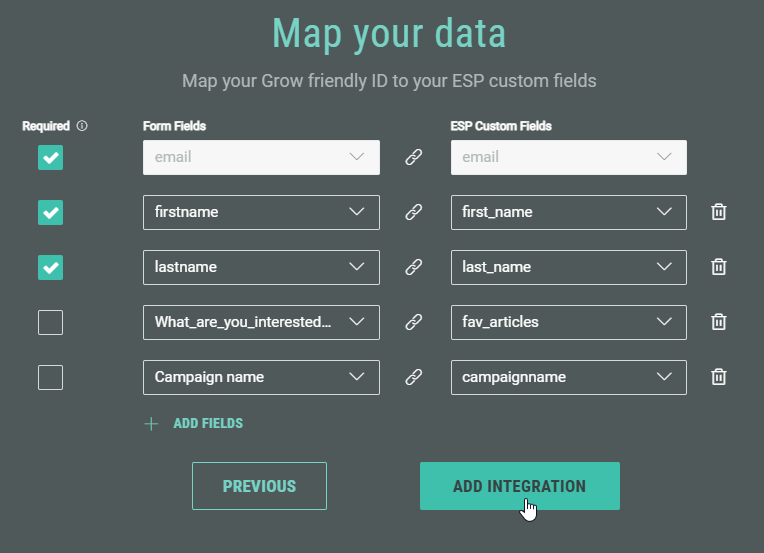 - Next, map your Grow friendly IDs to your Sailthru custom fields.