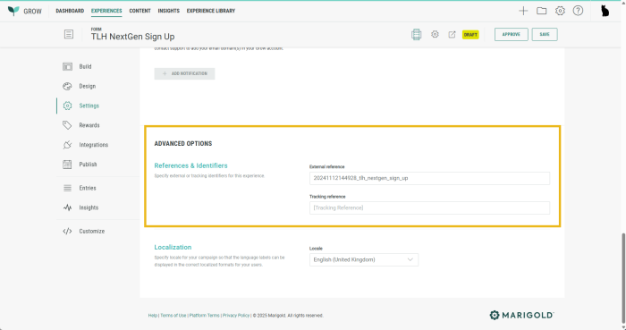* The ExternalRef ID is autogenerated by our system, but you can enter your own code or reference by navigating to your Experience Settings > Advanced Options > References & Identifiers.![]()