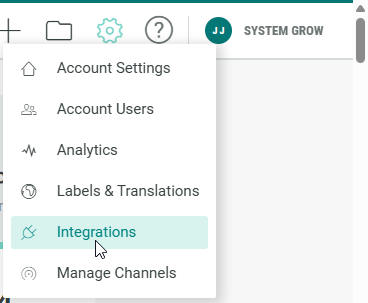 1. Click on the Gear icon in the top navigation bar and select Integrations from the list of available options.