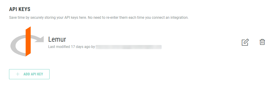 1. On the Integrations page, in the API Keys section, click on + Add API Key.