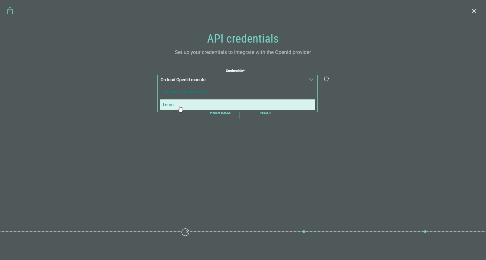 1. An API credentials step is shown only when more than one OpenID API Key has been configured. If so, select an OpenID API Key here. Then click Next.