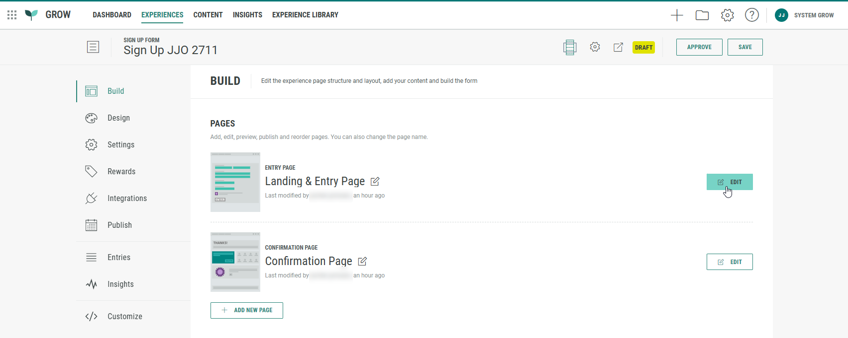 1. Click on the Build tab in the left-hand navigation, and edit the Landing & Entry page.