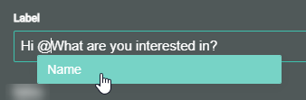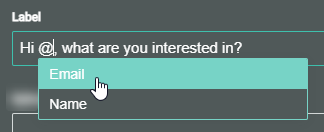 - Then click the Single Choice module and update the default Label from What are you interested in? to Hi Name, what are you interested in?. To enter the Name personalization field (also called a token), type an @ sign. The Name field will automatically pop up for selection.