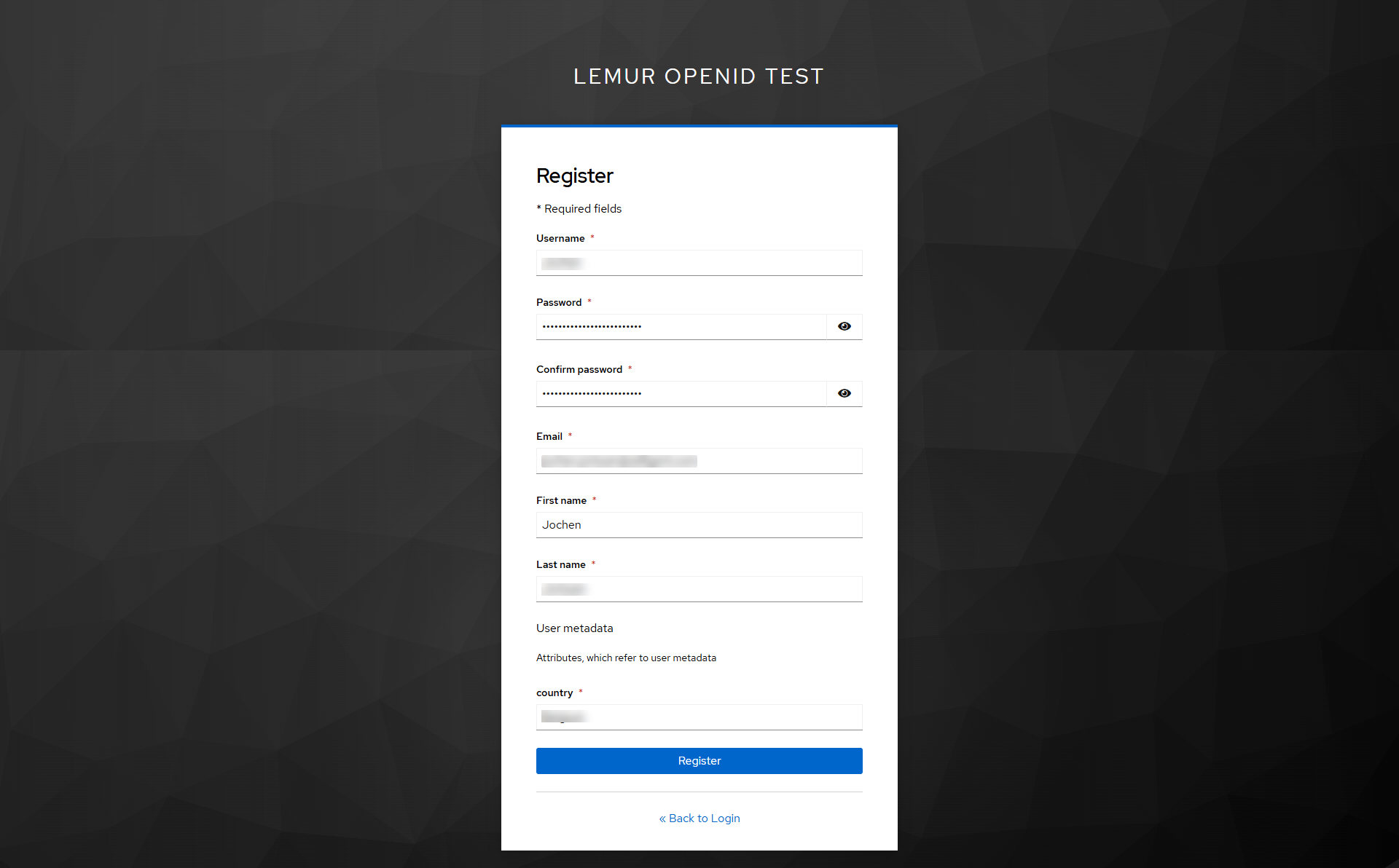 - A screen is shown in which you can enter values for the OpenID credentials fields.