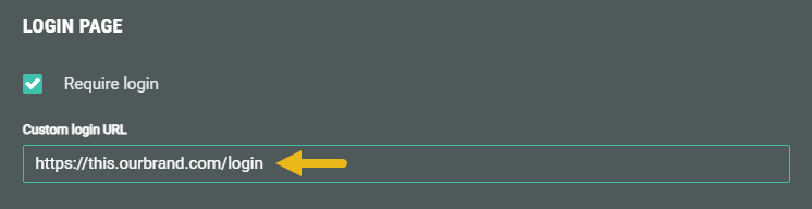 Note: When login is required, you can also set a URL that leads to a custom login page (instead of the default login page).