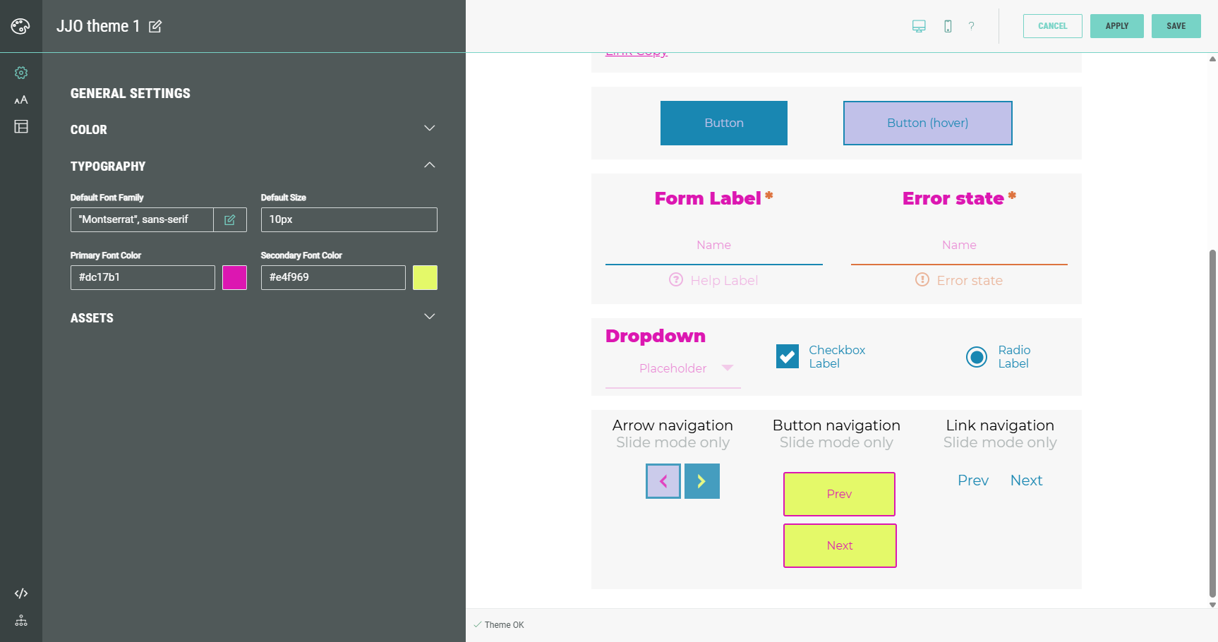 With the Theme Designer, you can customize font, colors and styling of themes easily without the need for any developer skills. That way, you can make sure your Experiences match your brand.