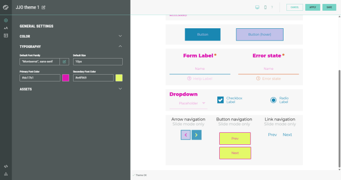 With each of these, specific styling settings can be configured for your theme in an easy way through the UI. -