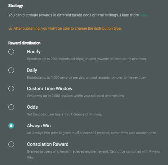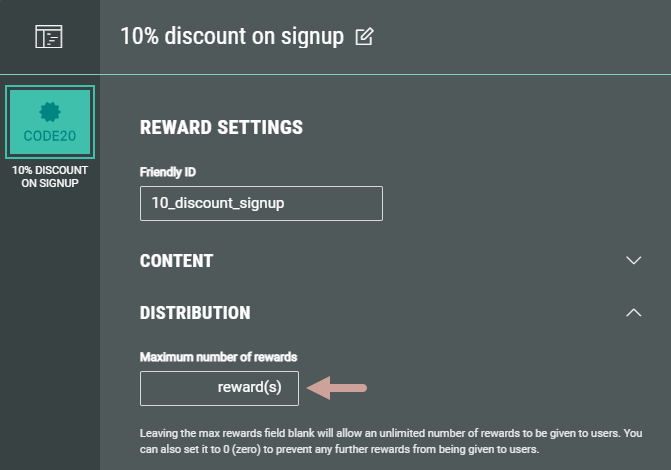 - In Distribution, you can enter the Maximum number of rewards you want to make available if applicable.