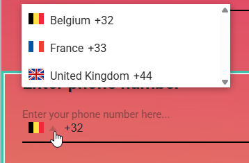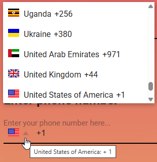 With this option, you can define a list of available countries Experience participants may choose from to enter their phone number.