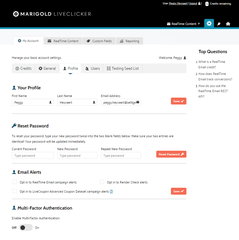 Activate Multi-factor authentication for your profile to add an extra layer of security to your Liveclicker account.