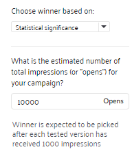 statistical significance: A statistical algorithm is used to define the winner. For this, the system requires an estimated amount of email opens.