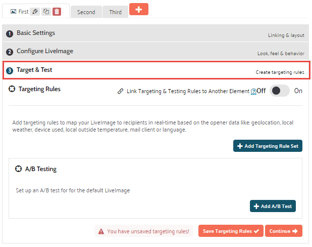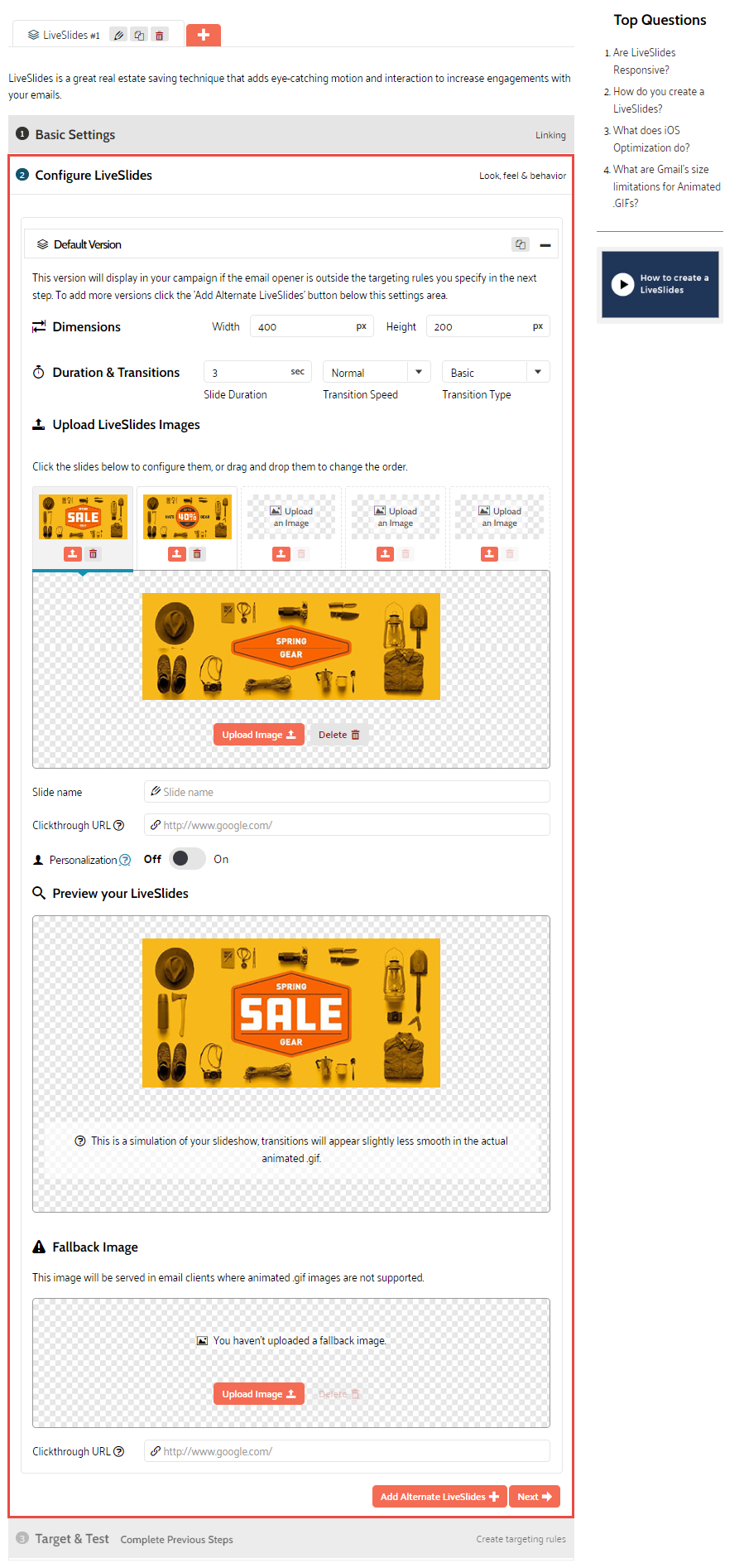 At this point you can either add an alternative version of the LiveSlides or move on to the targeting and testing section.