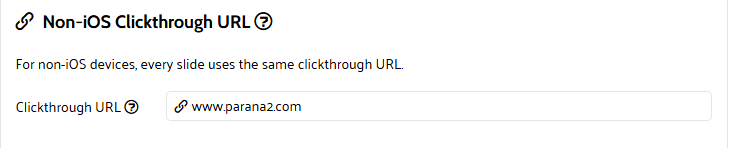 7. Define a clickthrough URL. This URL is the same for all the images in the slideshow, unless you have activated the option for iOS optimization. In this case, you can set a different URL for each image.