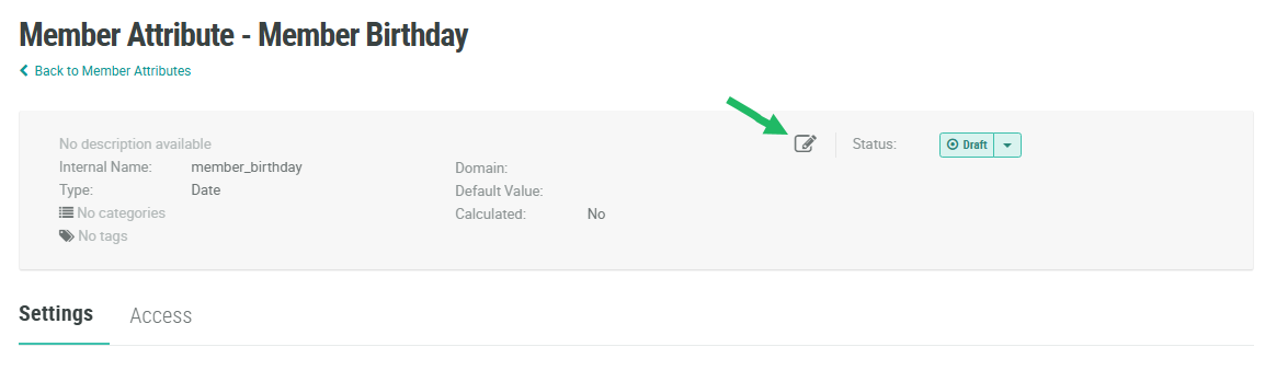 • Member API Enabled: Makes the Member Attribute available through platform APIs. Enable this only if necessary; adding unnecessary Attributes to API payloads can affect performance.