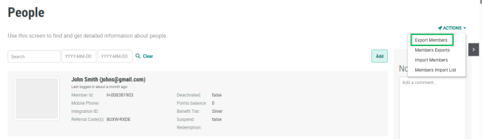1. Select Members from the top navigation bar, then select CSR > People from the side navigation menu. The People screen is displayed.