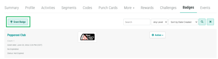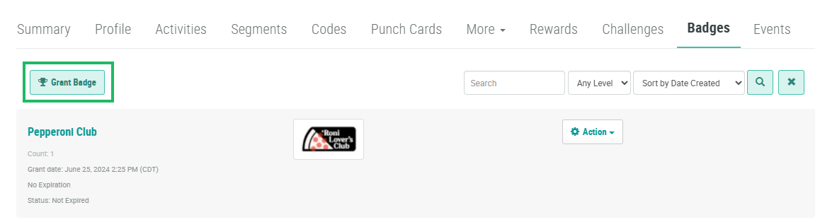Typically Members earn Badges by performing specific actions or spending their Metrics. However, from the Member Profile screen, a Customer Service Representative can manually grant a Member a Badge.