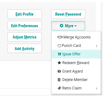 3. Within the header section of the screen, click More > Issue Offer. The Select an Offer to Issue pop-up window is displayed.