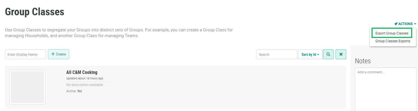 From the Actions drop-down menu, select Export Group Classes. The Create New Export pop-up window is displayed.