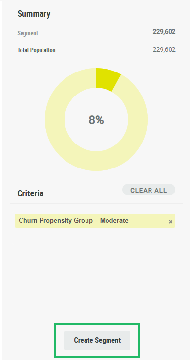 Optionally, to remove a condition from the segment, click the X icon next to the condition description. Or, click Clear All to remove all conditions.
