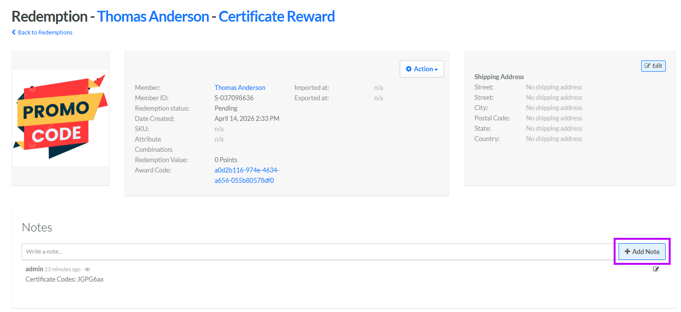 Add a Note to a Redemption