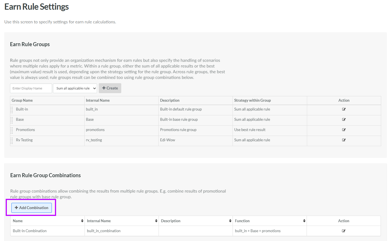 Create an Earn Rule Group Combination