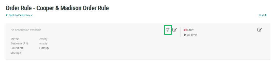 In the header section of the Order Rule Details screen, click the Copy icon.