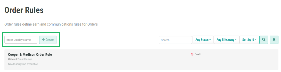 Above the list of Order Rules, in the Enter Display Name field, enter a name for the new Order Rule.