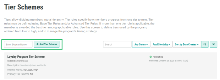 Tier Schemes are used to incentivize Members to spend in your loyalty program by offering better rewards or increased discounts at higher tiers.