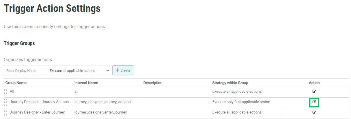 Within the Action column of the desired Trigger Group, click the Edit icon. The Trigger Group pop-up window is displayed.