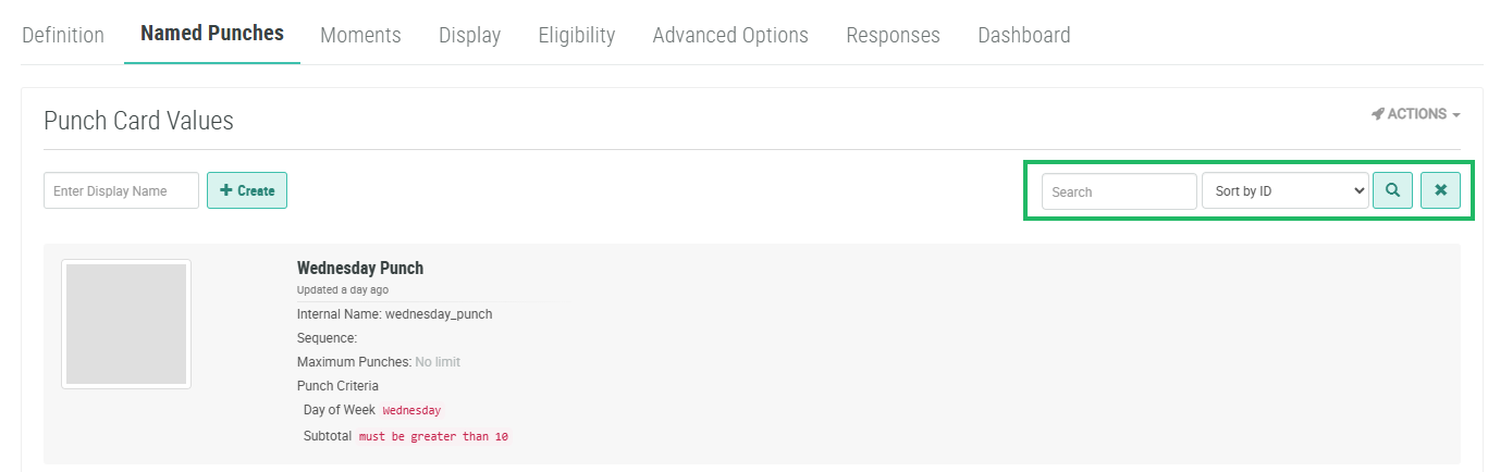 1. To sort the search results, select the desired sort order from the Sort By drop-down menu. The default sort order is by: Named Punch ID.