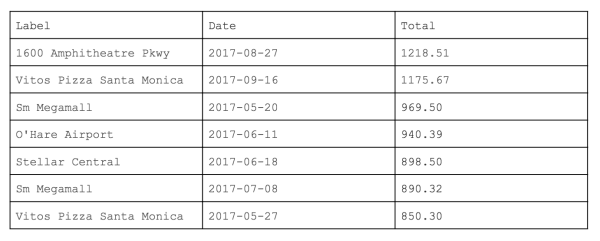 A few examples of Spark queries and their corresponding Sample Results are shown below.