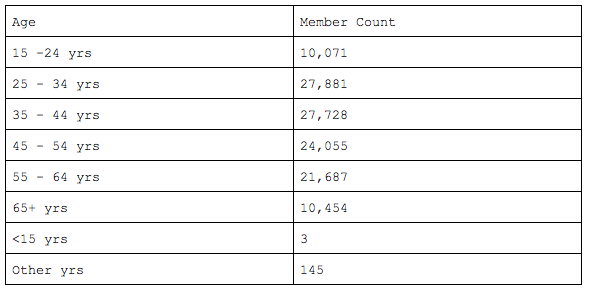 { "queryType": "groupByMember", "dimensions": [ { "name": "Age", "expr": "getAgeGroup() + ' yrs'" } ], "measures": [ { "name": "Member Count", "expr": "1.0" } ] } |