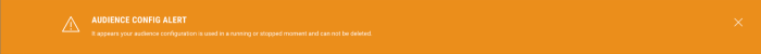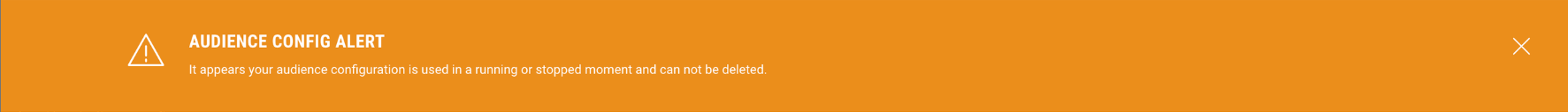Delete an Audience Configuration — Delete is not possible for Audience Configurations that are used in Moments with status running or stopped. An error message is displayed informing the user: