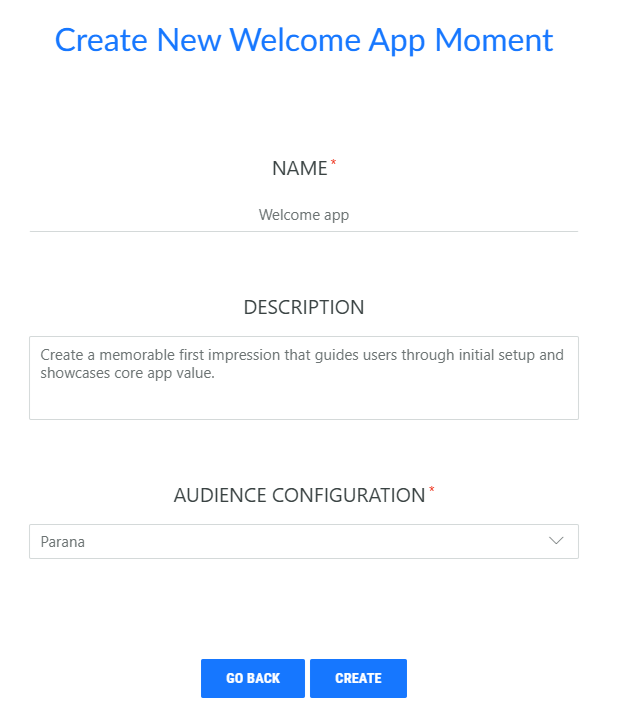 Fill out the name, description and select the Audience Configuration to apply to this Moment.