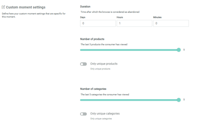 Number of products — The number of products last browsed that will be available in the Moment. This information can then be used for personalization and segmentation when taking action upon this Moment.