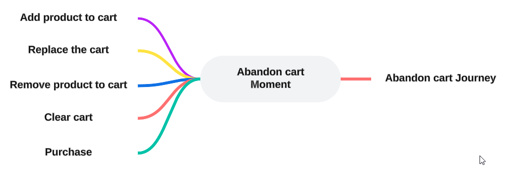 For example: A customer adds 5 items to their cart and then removes 2 again. One hour after the items were removed and no other actions were taken on the cart, the Cart Abandon Moment is trigger and subsequent actions can be taken.