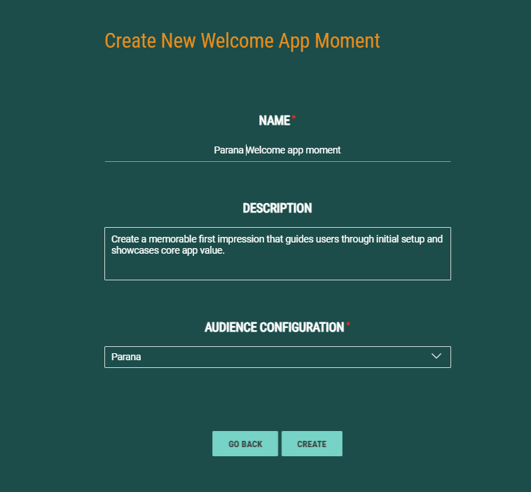 In the properties, fill out the name, description and select the Audience Configuration to apply to this Moment.