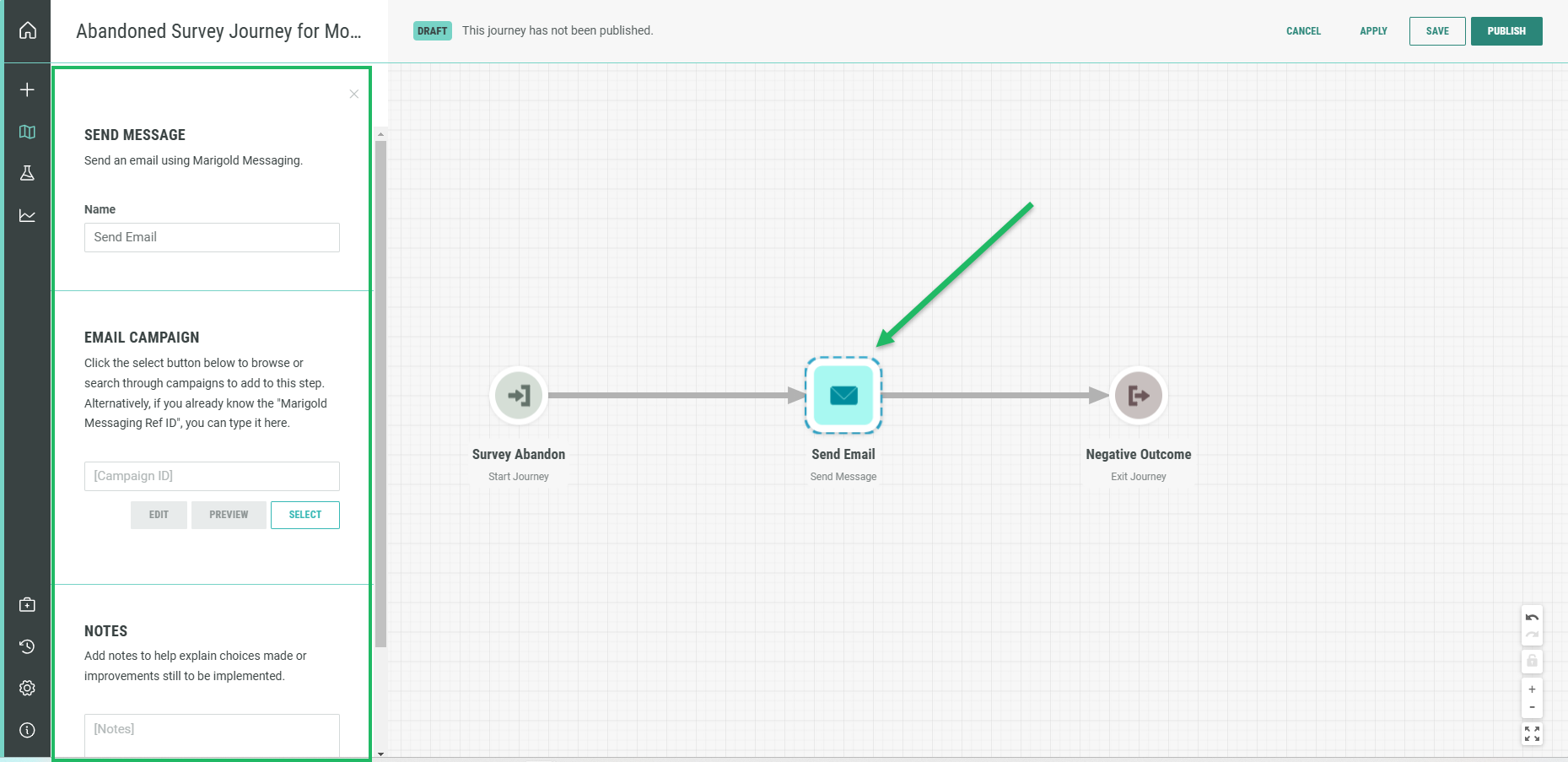 Step 4: In the Journey builder, select and configure the email campaigns to be sent out in the journey