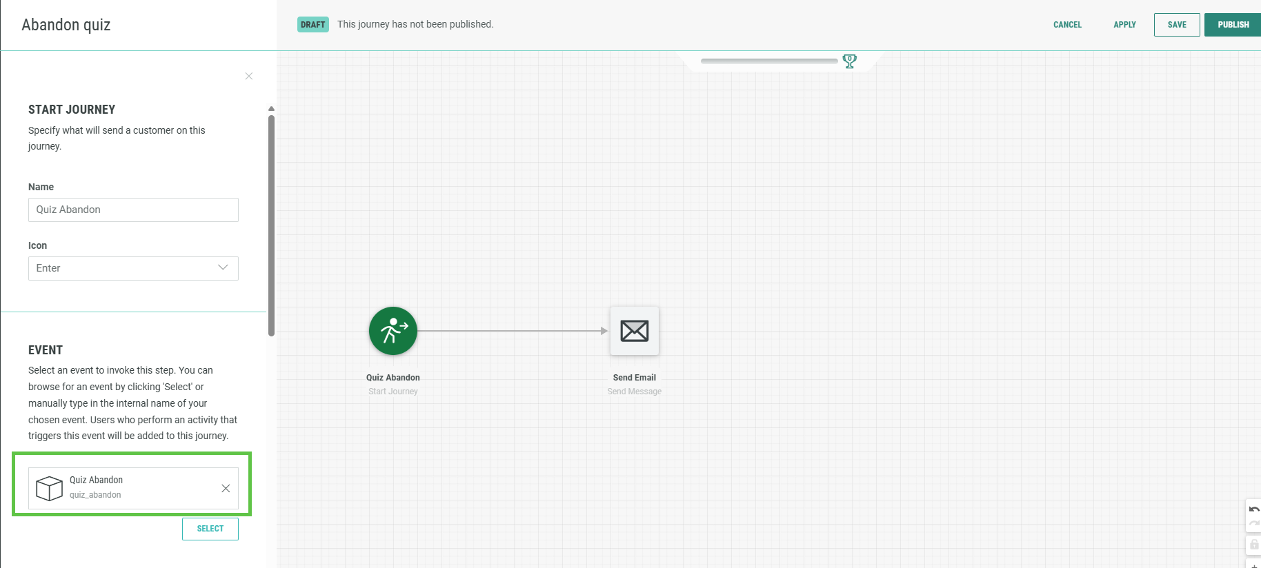 Step 3: In your Journey builder, create and configure the custom Quiz Abandon Journey