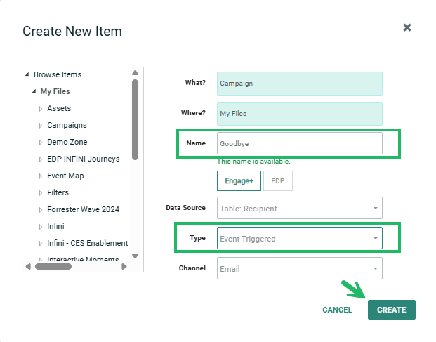 Step 3: In your Journey builder, create the custom Goodbye journey