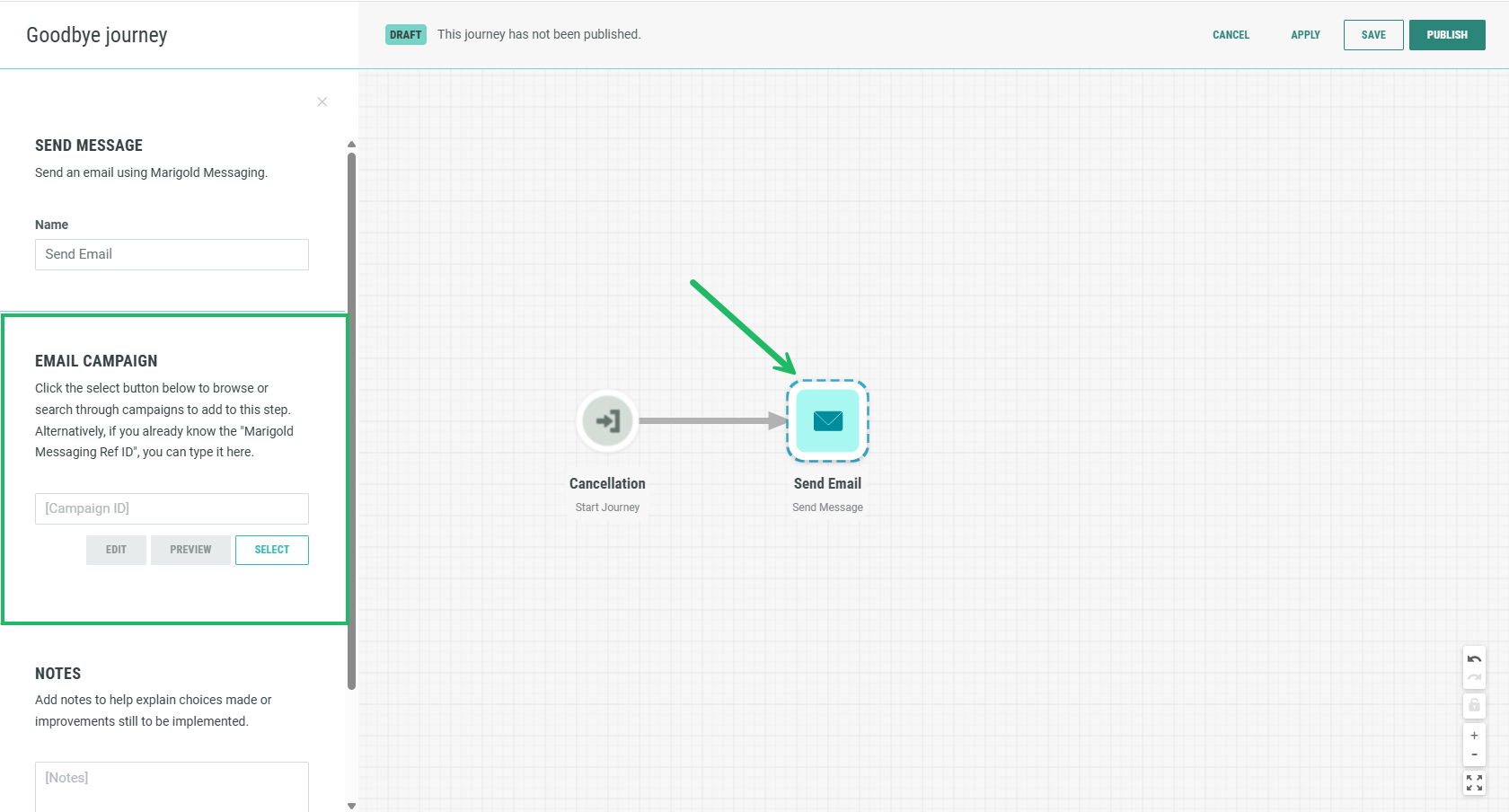 Step 4: In the Journey builder, select the messages to be sent out in the journey